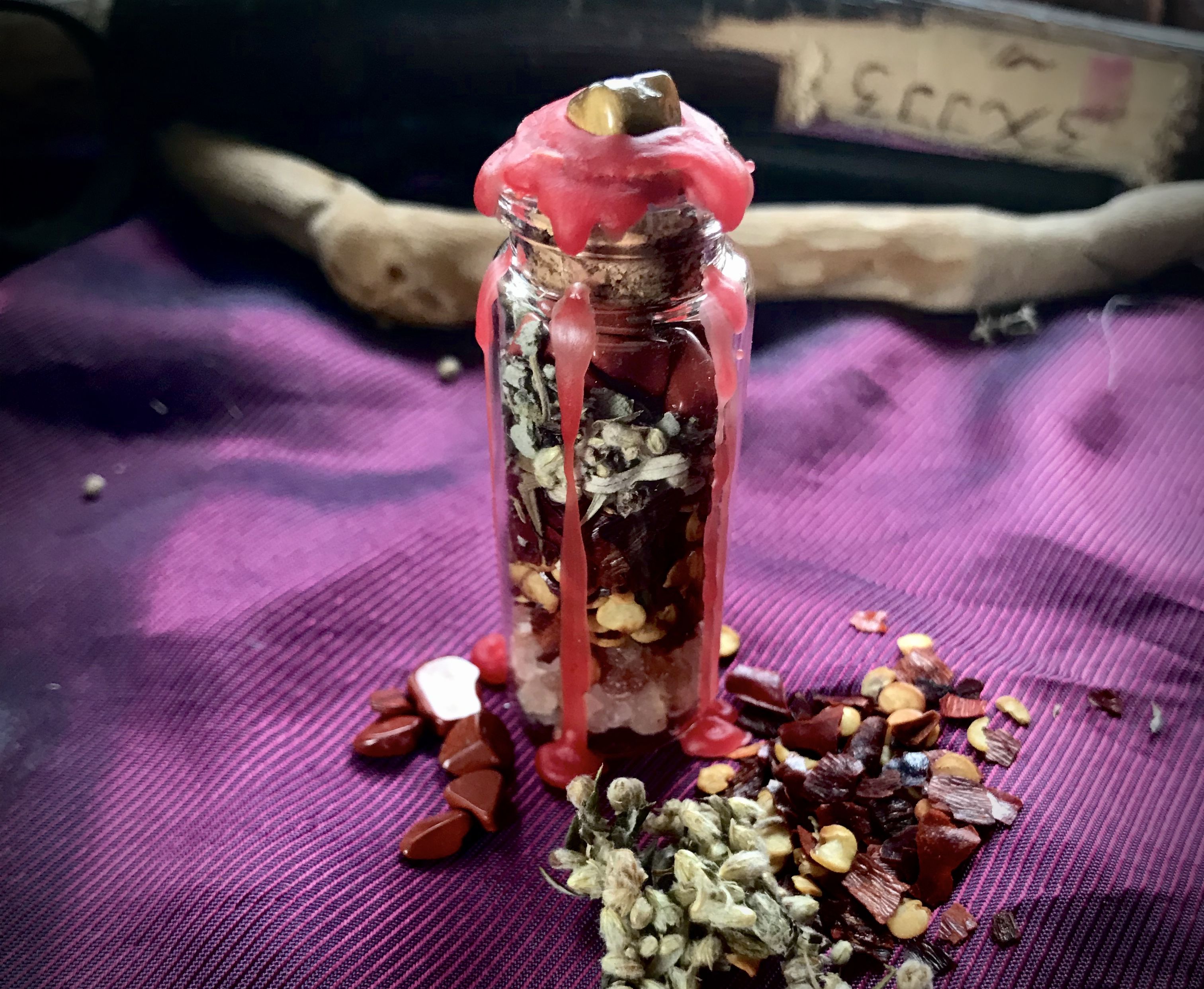 Spell bottles Witch Magic Craft tool - Self Love, Solar Strength, Firey Passion with crystals, herbs, oils